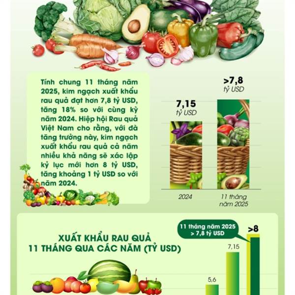 Xuất khẩu rau quả tăng vọt, đạt kỷ lục 1,3 tỉ USD chỉ trong 20 ngày