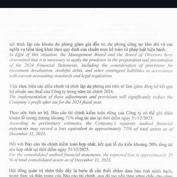 BCG cũng sẽ có BCTC. Chỉ là lỗ nặng thôi