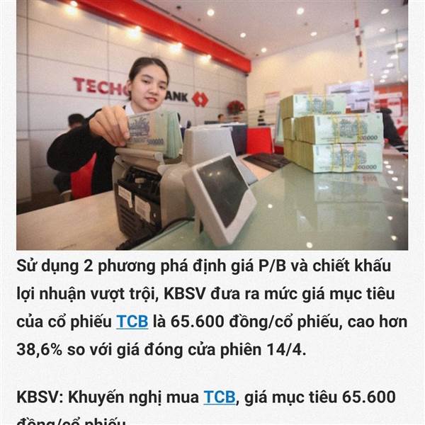 Đầu tư giá trị vào TCB ư. Ko 1 cổ tức. BC lãi mấy quý liền nhưng tiền thì cứ giảm....