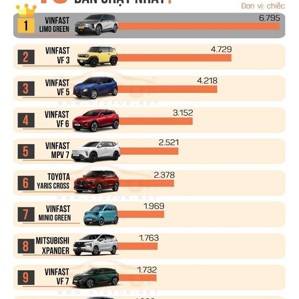Thị trường ô tô Việt Nam tiếp tục gọi tên VinFast với màn càn quét cực mạnh: