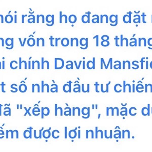 Vài người cho rằng lái Việt kéo VFS. Xin thưa 1. Vol của nó 15 triệu cổ tương đương khoảng 600 triệu đô, đủ tiền chơi 1 phiên không ??? 2. Mỹ nó cho bán khống, kéo láo nó short cho vỡ đầu phá sản, dám c...Thêm