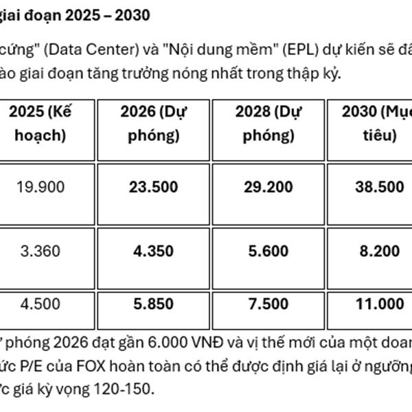 Năm 2026 được xem là năm "bản lề" để FOX chuyển mình từ một đơn vị hạ tầng thành một gã khổng lồ về dịch vụ số. ...Thêm