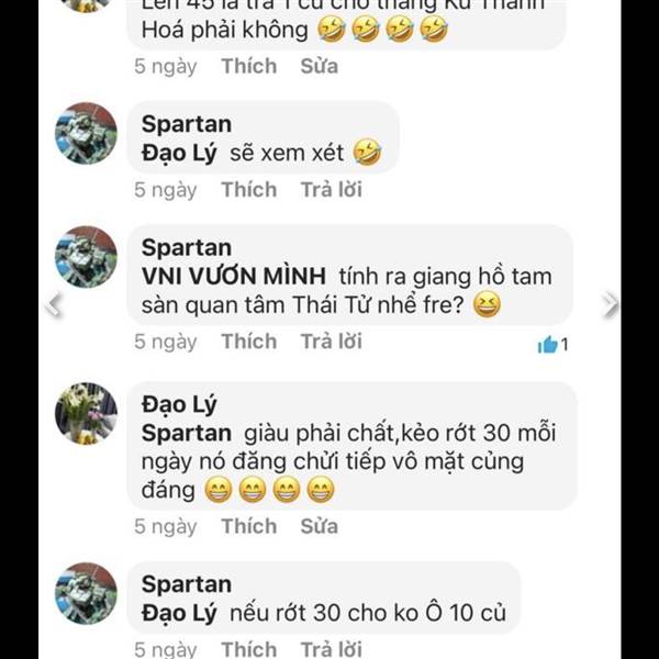 Mấy hôm nay em trong room HVN có thấy con Chóa Spartan đâu không? Hay cháu nó tâm con mẹ nó thần rồi vậy anh em, bình thường cháu nó sủa ghê lắm, nay không thấy sủa nữa nhớ ghê. Chắc bị chửi nhiều quá...Thêm