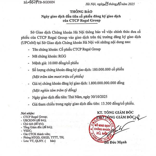 1. Nghe nói Regal group (RGG) DXS sở hữu 55%, 22/9 này chia 11.7% cổ tức thì DXS nhận khoảng 115 tỏi có phải không các bác? Này là hạch toàn trong quý 3 hay quý 4 nhỉ? 2. Cuối năm RGG Lên sàn Hose nữa ...Thêm