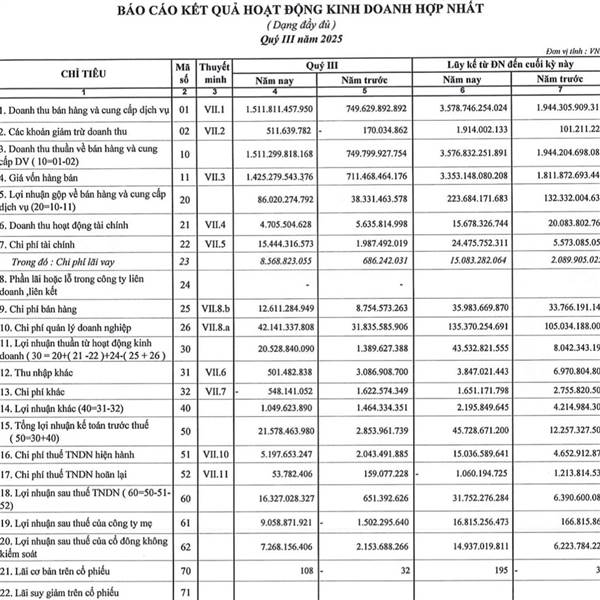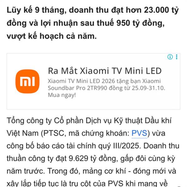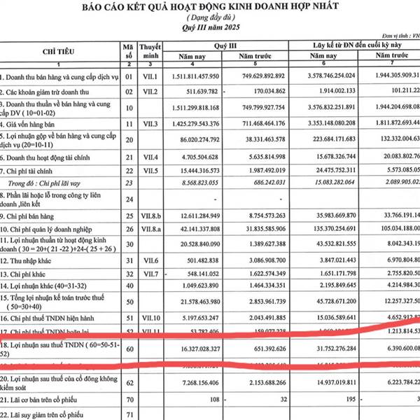 BCTC Quý III/2025 PVC: + Doanh thu: 1.511,3 tỷ (x2 svck) + Lợi nhuận sau thuế: 16,3 tỷ (gấp 25 lần cùng kì năm trước) + LNST 9T/2025 31,75 tỷ (gấp 5 lần 9T/2024, gấp đôi cả năm 2024, vượt kế hoạch cả năm...Thêm