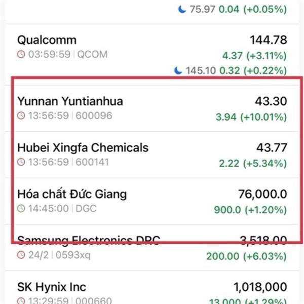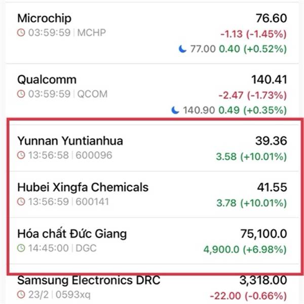 Phiên nay DGC tăng hơn 1% chẳng bõ bèn gì so với 2 cty khủng bên china tiếp tục tăng 10% phiên thứ 2 liên tiếp và vượt đỉnh lịch sử 2022 rồi, Nay khối ngoại tiếp tục sửa sai nhập thêm hơn 100 tỷ dgc => ...Thêm