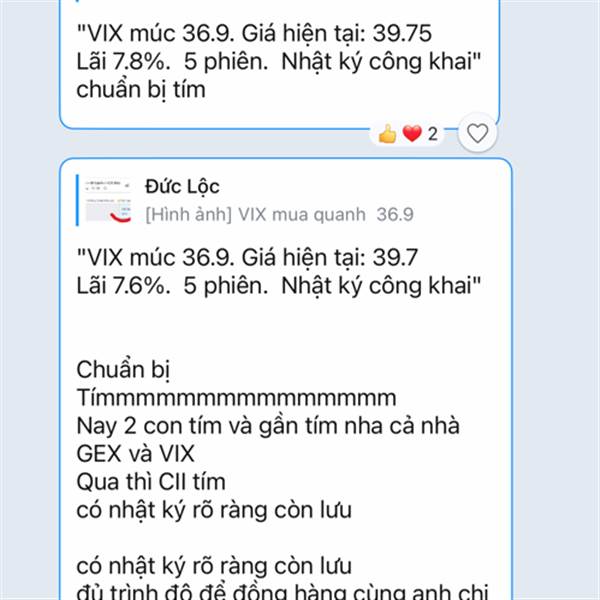 Có nhóm của thằng Đức Lộc này nó hô mua cách giá chạy cả khúc. VIX chạy lên 38 nó hô mua giá 36.9 thì mua luôn cái lmn chứ. rồi lên room khoe lãi. Vãi cả lợn