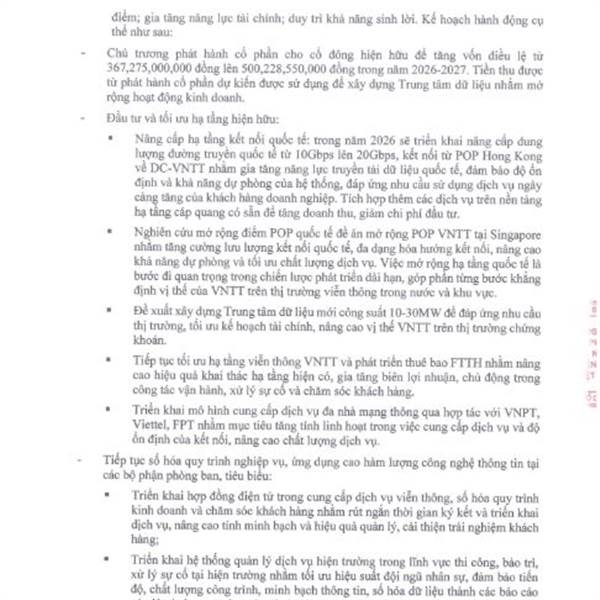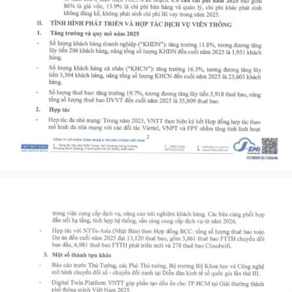 Dịch vụ Viễn thông vẫn là mảng mang lại dt chủ lực cho cty 53% Đến cuối năm 2025 KHDN tăng 11,8% là 1,951 Khách hàng, KHCN tăng trưởng 16,3% là 23,603 khách hàng BCM phát triển kcn và Vsip sẽ mở rộng lê...Thêm