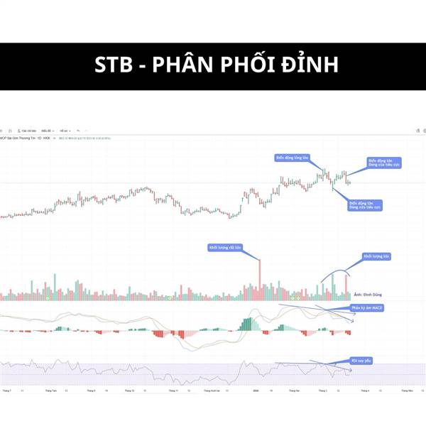 STB hiện đang giao dịch quanh vùng đỉnh cao lịch sử. Tuy nhiên, cổ phiếu đã xuất hiện các dấu hiệu phân phối đỉnh: - Biến động lỏng lẻo với khối lượng rất lớn - Khối lượng lớn tại...Thêm