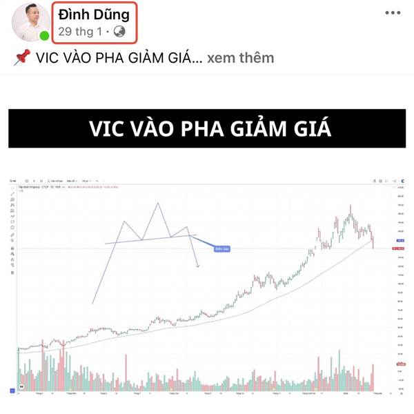 Mình đã nhận định VIC VÀO DOWNTREND ngày 29/01/2026 Mặc dù cổ phiếu còn rướn tăng lên lại vì nhiều mục đích khác nhau, nhưng việc gì tới cũng phải tới.