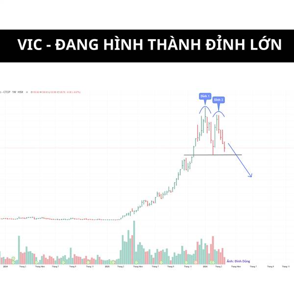 📌 VIC - ĐANG HÌNH THÀNH ĐỈNH LỚN VIC đang hình thành đỉnh lớn, chờ đợi để giảm mạnh. Thời điểm này VIC trông giống như đang tạo mẫu hình 2 đỉnh. Sắp tới khả năng về vùng giá 85, giảm khoảng 33% Mức độ t...Thêm