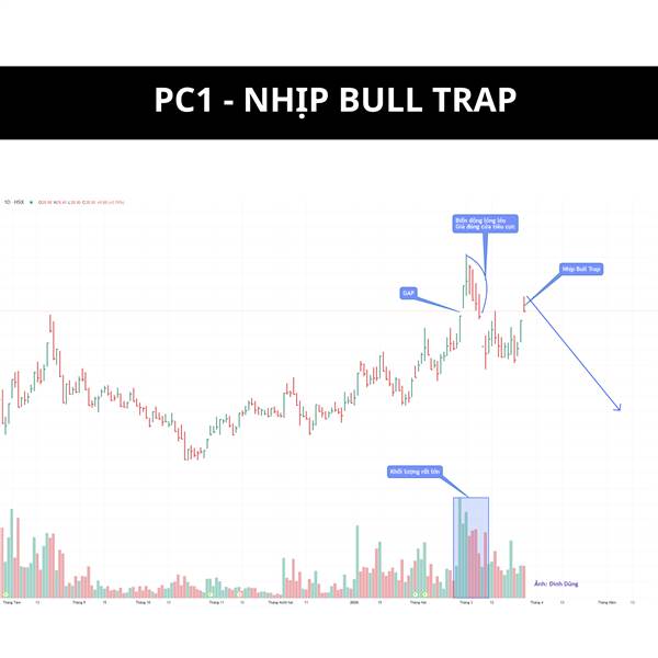 PC1 đã đạt đỉnh hồi đầu tháng 3/2026 Nhịp kéo tăng giá các phiên gần đây là nhịp Bull Trap (bẫy tăng giá) Sau khi cổ phiếu đạt đỉnh, trên đường giảm giá, luôn xuất hiện các nhịp B...Thêm