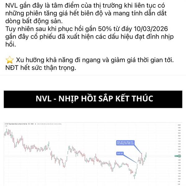 NVL gần đây là tâm điểm của thị trường khi liên tục có những phiên tăng giá hết biên độ và mang tính dẫn dắt dòng bất động sản. Tuy nhiên sau khi phục hồi gần 50% từ đáy ...Thêm