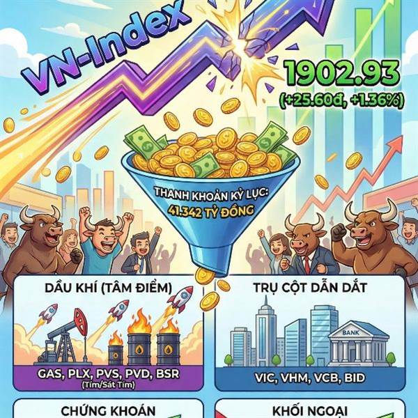 📊 BẢN TIN THỊ TRƯỜNG VN-INDEX — NGÀY 11/11/2025 🔹 I. Tổng Quan Thị Trường Thị trường chứng khoán Việt Nam khởi sắc trong phiên 11/11 khi VN-Index tăng 13,07 điểm (+0,83%), đóng cửa tại 1.593,61 điểm. T...Thêm