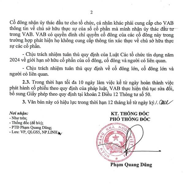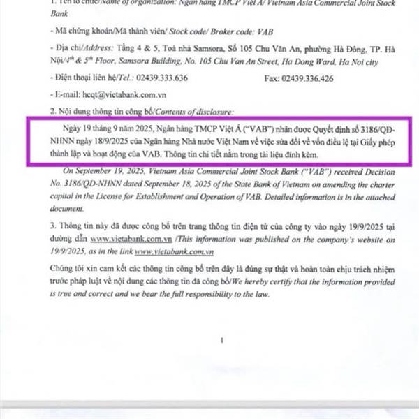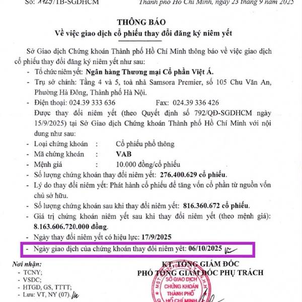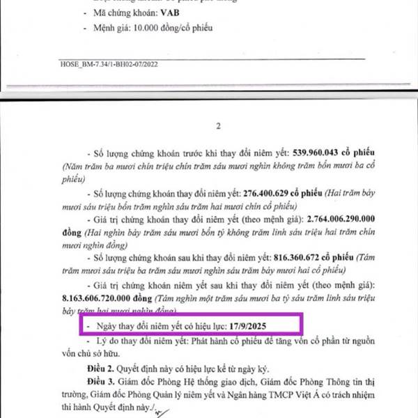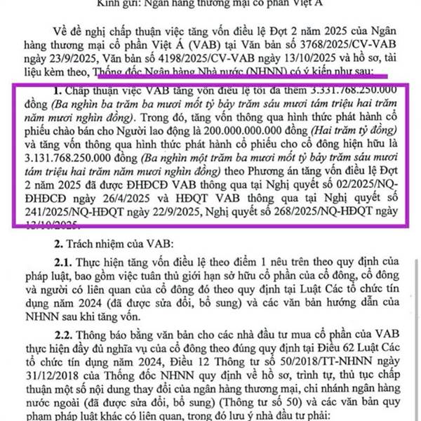 Giờ NHNN mới công nhận vốn điều lệ của VAB tăng lên. Sắp tới sẽ có ngày giao dịch số cổ tức được ny từ hôm 17/9.