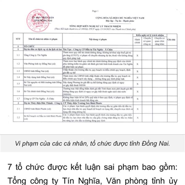 Dự án Khu dân cư Dịch vụ du lịch Cù lao Tân Vạn (Đảo Kim Quy, phường Biên Hoà, tỉnh Đồng Nai) hiện tại thuộc sở hữu của Công ty Cổ phần Địa ốc Sài Gòn Thương Tín (TTC Land). Tuy nhiên, trước đó, Thanh tra Chính phủ đã có kết luận về các sai phạm như: phê duyệt điều chỉnh quy hoạch chi tiết 1/500 trái quy định; điều chỉnh chức năng khu du lịch sang khu nhà ở không đúng quy định; không bố trí 20% quỹ đất nhà ở xã hội…