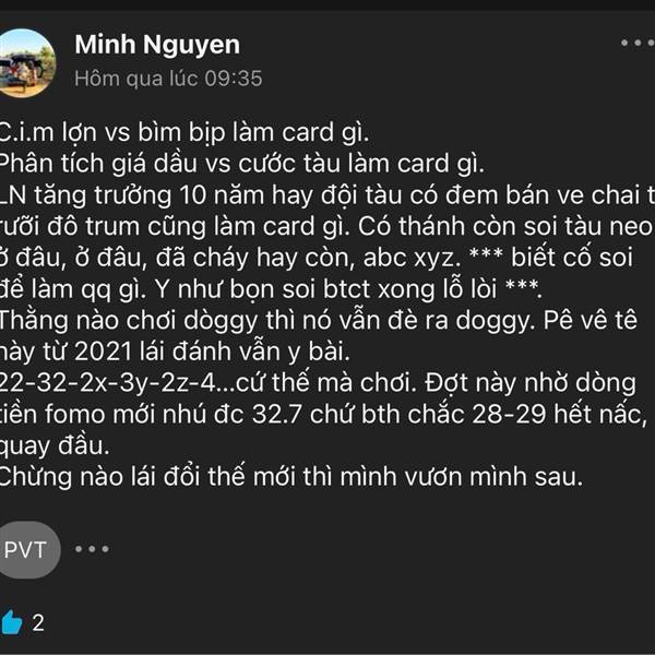 Xưa từng ăn 1 nhịp PVT 19-25 nên, nên mấy tháng trước múc PVT thay vì PVS (26). Hiệu quả đầu tư thấp hơn hẳn.