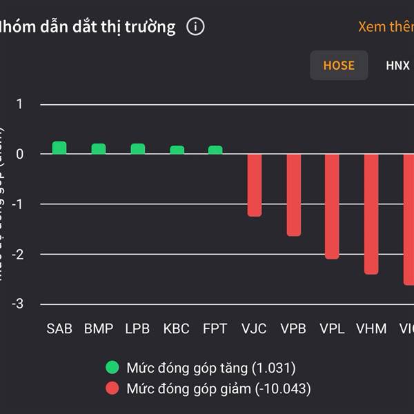 Nhóm đặt áp lực giảm lên thị trường phiên nay: VIC VHM VPL VPB VJC VCB... ^^