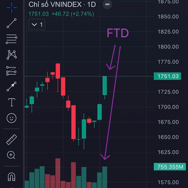Vnindex có phiên FTD đạt điều kiện về khối lượng và chỉ số