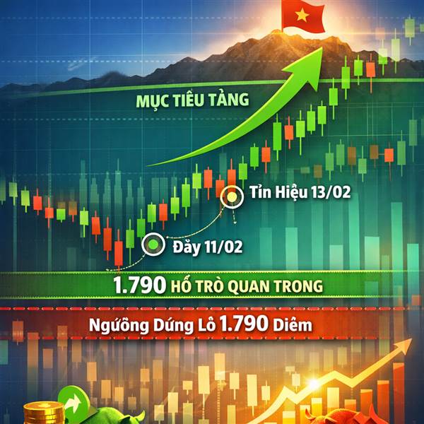 VN-Index thu hẹp đà giảm tại hỗ trợ 1.790 điểm cho thấy quán tính tăng ổn định. Dựa trên tín hiệu tạo đáy ở phiên 11/02 và tín hiệu phiên 13/02, chúng tôi cho rằng chỉ số hoàn toàn có khả năng kiểm đị...Thêm