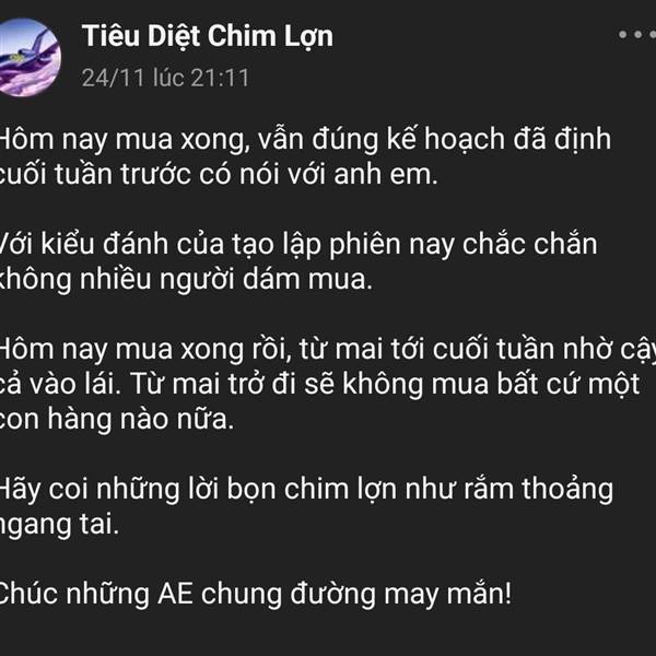 Cho tới lúc này có thể tự tin khẳng định tất cả hàng bắt đáy 2 phiên trước của tôi về đều có ăn. Chia vui với những ai chung đường. Hàng về tùy mồm, anh em tùy nghi di tản 👍