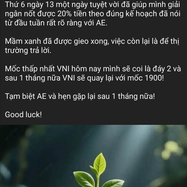 Bức ảnh mà tôi thấy ưng ý nhất và mong muốn nhất được thấy lúc này là 4 con nhà Vượn đều sàn 😆. Mỗi ngày Vượn sàn sẽ trả lại cho VNI tầm 25_30 ₫. Nhịp tạo đỉnh số 1 thì họ Vượn sàn gần 3 cây vì vậy n...Thêm