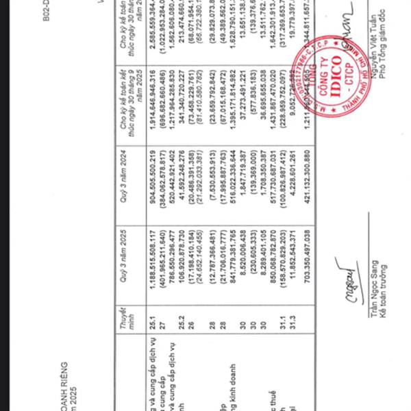 Kết quả kinh doanh: Quý 2/2025, IDC ghi nhận doanh thu đạt 1.763 tỷ đồng (-13% YoY), lợi nhuận sau thuế đạt 415 tỷ đồng (-29% YoY). Doanh thu cho thuê khu công nghiệp gi...Thêm