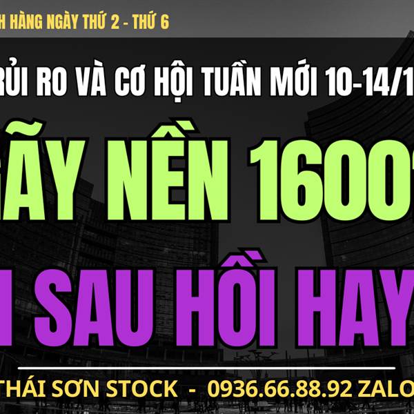 Gãy nền 1600, trụ nằm sàn, quay đầu cuối tuần, sang tuần hồi lại trả điểm hay sập mạnh, mua bán thế nào, review lại toàn ngành BANK CK BĐS, kịch bản và hành động tuần mới.