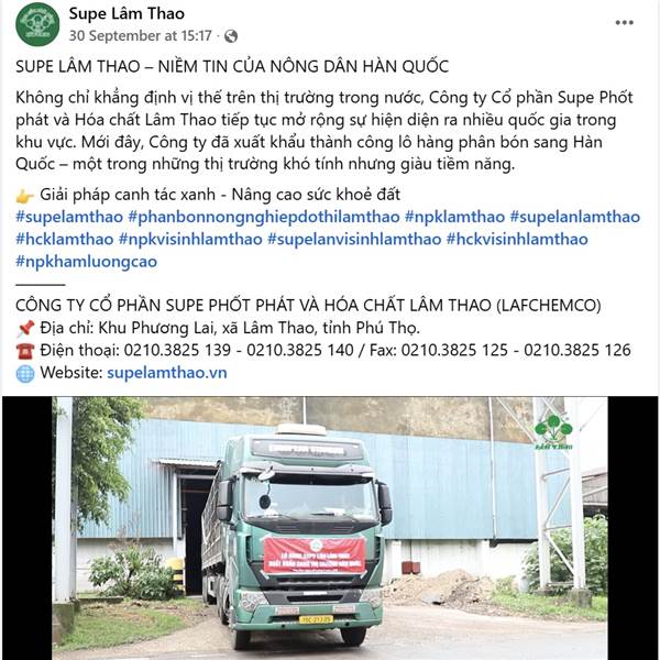 Không chỉ khẳng định vị thế trên thị trường trong nước, Công ty Cổ phần Supe Phốt phát và Hóa chất Lâm Thao tiếp tục mở rộng sự hiện diện ra nhiều quốc g...Thêmwww.facebook.com/.../762165173313940