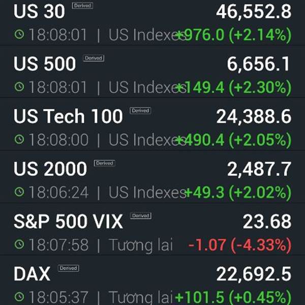 dj hôm nay đi 1500d ,tuong lai niken đang đi hơn 6% dự thứ 2 mở bát 10% , vịt thứ 2 đi 70d