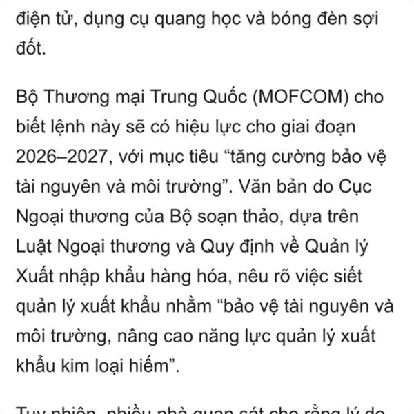 Giữa lúc Mỹ đang 'ăn mừng' vì được tiếp tục nhập đất hiếm, Bắc Kinh 'tung đòn' mới: Lại âm thầm siết xuất khẩu một loạt khoáng sản quan trọng khác