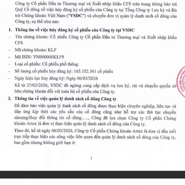 Xin hỏi có thông báo chuyển cổ phiếu KLF qua ctck ART quản lý thì mình có cần phải liên hệ để làm sổ cổ đông không các bác.