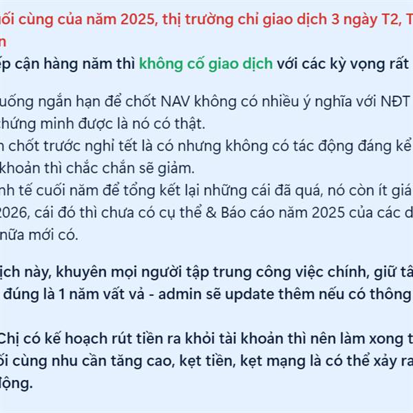 ✅Phiên cuối cùng của năm 2025 kéo chỉ số tích cực để chốt NAV năm bởi nhóm cổ trụ như VIN, Bank...