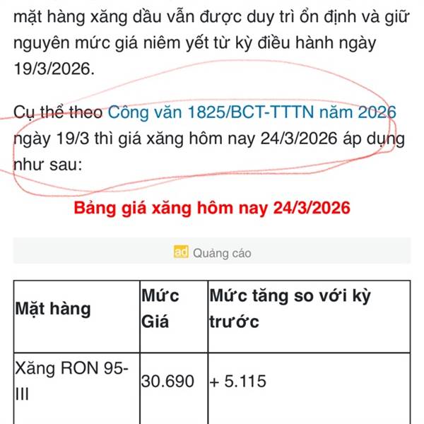 Mấy bài báo đăng giá xăng đã xoá hết rồi
