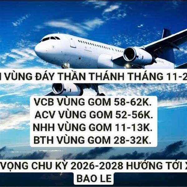 GOM VÙNG ĐÁY THẦN THÁNH THÁNG 11-2025. VCB VÙNG GOM 58-62K. ACV VÙNG GOM 52-56K. NHH VÙNG GOM 11-13K. BTH VÙNG GOM 28-32K. KỲ VỌNG CHU KỲ 2026-2028 HƯỚNG TỚI X2. BAO LE
