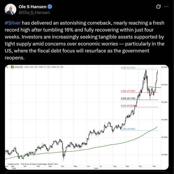 Giá bạc đã trải qua một chuyến đi đầy biến động khi thị trường chứng kiến áp lực bán mới sau khi chạm mức kháng cự quan trọng trên 54 đô la một ounce qua đêm.