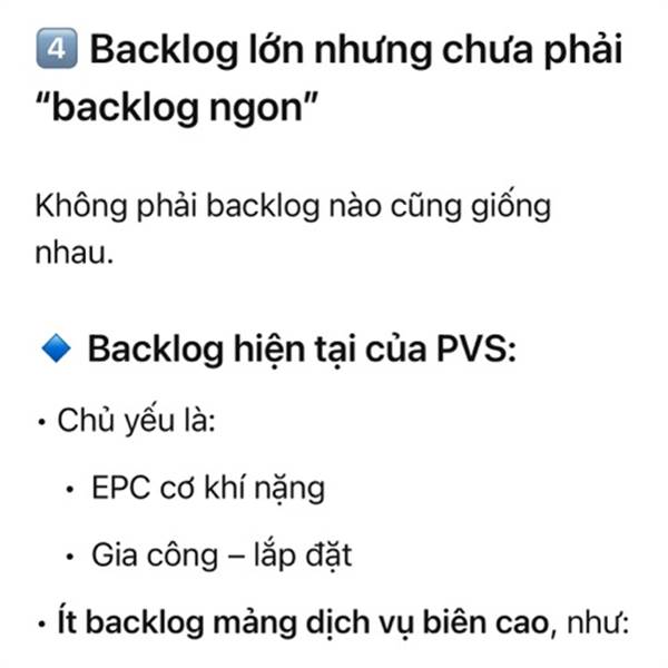 Đây là động lực để các lãnh đạo PVS, PVD, PVT cố gắng cống hiến tạo ra lợi nhuận sao. Đặc biệt thiên thời ủng hộ PVS với lượng backlog khổng lồ vài tỷ đô. Trân trọng!