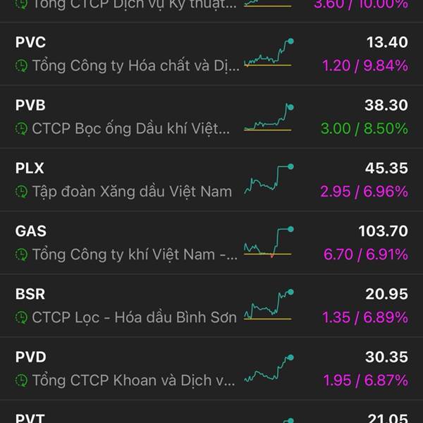 Ngay lúc này đây dầu đã bốc đầu gần 5% Anh chị em ôm cổ dầu lúc này giữ chặt cứng nhé Buông ra là mất hàng Những anh em chưa có hàng có thể múc BSR PLX POW PVT PVD - Mua và nắm giữ.