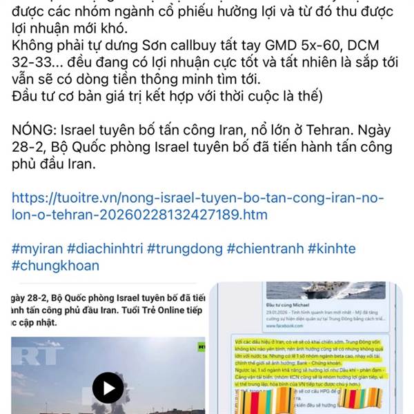 (Nhìn lại cuộc chiến khá ngắn giữa Israel-Iran giữa năm 2025 đã giúp DCM vượt đỉnh lịch sử gần 44k tại thời điểm đó. Giai đoạn hiện tại, không phải là xung đột nhẹ giữa Israel và Iran, mà là sự tham c...Thêmhttps://www.facebook.com/share/p/1HjBV3HJTT/