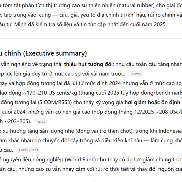 Phân tích thị trường cao su cuối 2025-2026 . (AI tổng hợp)