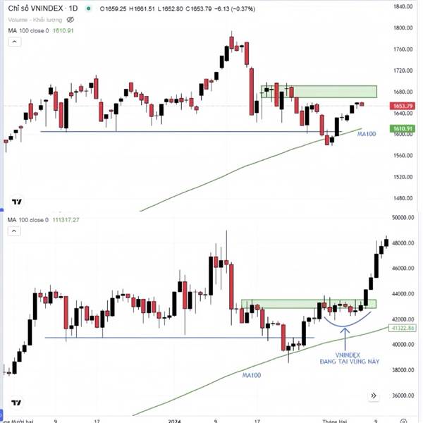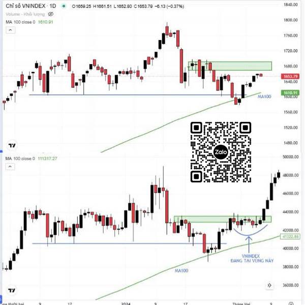 Kịch bản tích cực nhất khi VNI tạo đáy quanh hỗ trợ tại Ma100 ngày và sớm dành lại 1600 trong 1-3 phiên tới