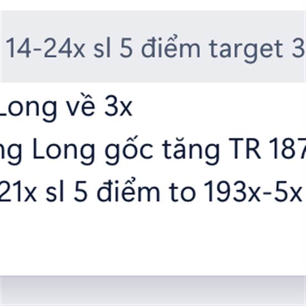 Plan sau 2h chiều chờ đạp kéo : Vùng Long 19-22x sl 17 target 3x-4x