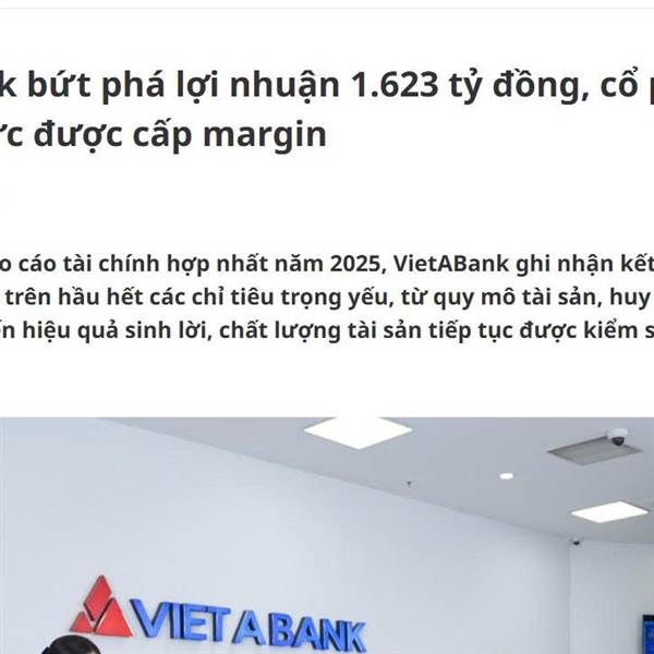 Theo thông tin từ Ngân hàng An Bình (ABBank – mã cổ phiếu ABB), tính đến ngày 31/12/2025, ABBank ghi nhận 3.522 tỷ đồng lợi nhuận trước thuế, hoàn thành gần 200% kế hoạch năm, trở thành một trong những ngân hàng có tốc độ tăng lợi nhuận mạnh nhất thị trường.