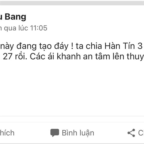 Hàn Tín không làm ta thất vọng ! Các khanh nghe ta mua 26-27 nay xem như 70% thành công rồi nhé