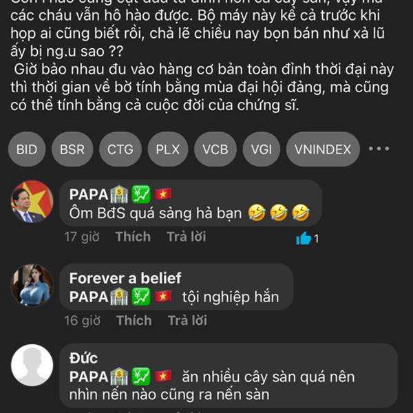 Con l nào cũng cụt đầu từ đỉnh hơn cả cây sàn, vậy mà các cháu vẫn hô hào được. Bộ máy này kể cả trước khi họp ai cũng biết rồi, chả lẽ chiều nay bọn bán như xả lũ ấy bị ng.u sao ??