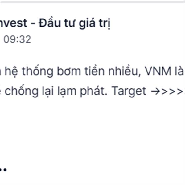 Ở thời điểm hệ thống bơm tiền nhiều, VNM là sự lựa chọn tốt để chống lại lạm phát. Target ->>>>>>>> 120k