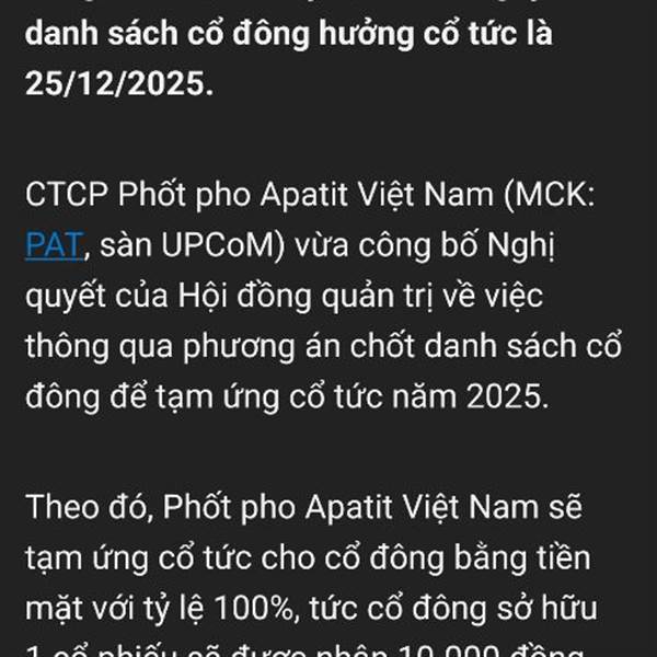 100% tiền nữa, vậy là cứ phải tới 31/12 mới biết còn doanh nghiệp nào chốt chia khủng hay ko, quá đã cho 2025 ct cao )))