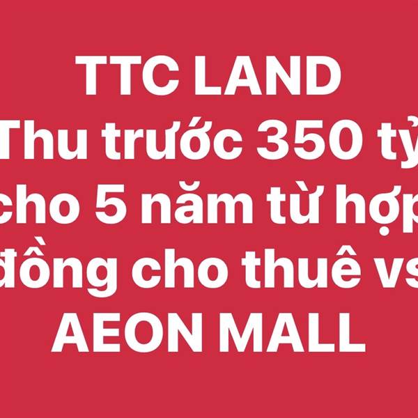 TTC Land đã hoàn tất ký bàn giao Khối đế thương mại cho AeonMall Việt Nam, thu trước hơn 350 tỷ đồng tiền thuê trong 5 năm.