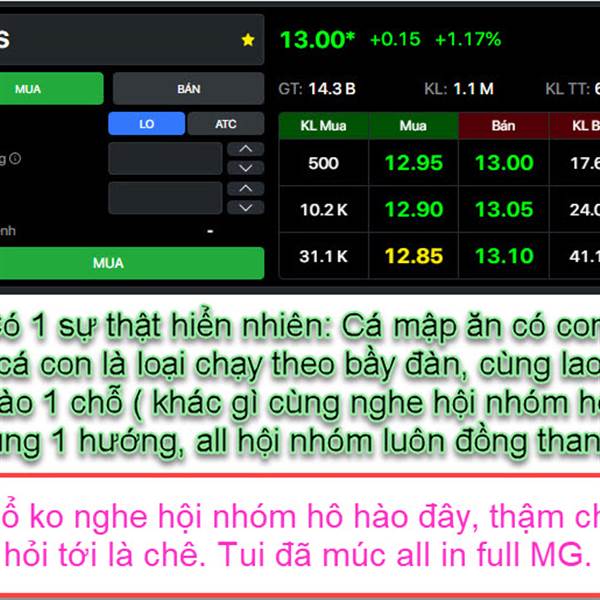 Câu "Ai cũng lổ như nhau, chúng sinh bình đẳng ", nghe hầu hết brocker lấy làm cửa miệng hổm nay để an ủi nhỏ lẻ đã bị họ lùa, rồi họ đang tiếp tục lùa đợt cuối, trận cuối mới là trận đi vào "sử sách ...Thêm