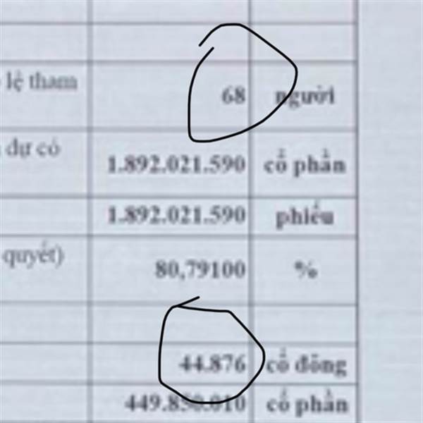 68 người đi họp chiếm 80,79% vốn